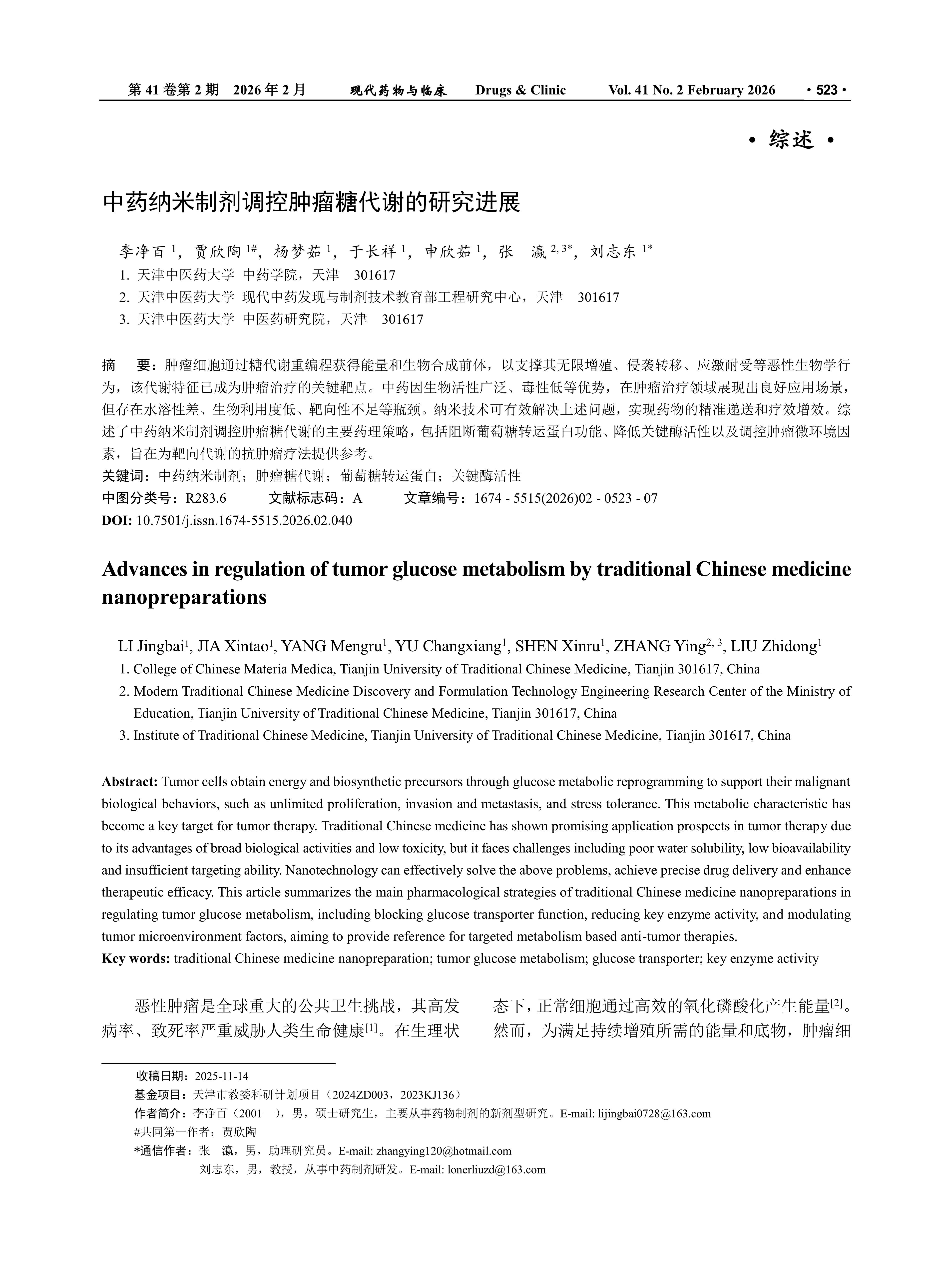 肿瘤细胞通过糖代谢重编程获得能量和生物合成前体,以支撑其无限增殖、侵袭转移、应激耐受等恶性生物学行为,该代谢特征已成为肿瘤治疗的关键靶点。中药因生物活性广泛、毒性低等优势,在肿瘤治疗领域展现出良好应用场景,但存在水溶性差、生物利用度低、靶向性不足等瓶颈。纳米技术可有效解决上述问题,实现药物的精准递送和疗效增效。综述了中药纳米制剂调控肿瘤糖代谢的主要药理策略,包括阻断葡萄糖转运蛋白功能、降低关键酶活性以及调控肿瘤微环境因素,旨在为靶向代谢的抗肿瘤疗法提供参考。