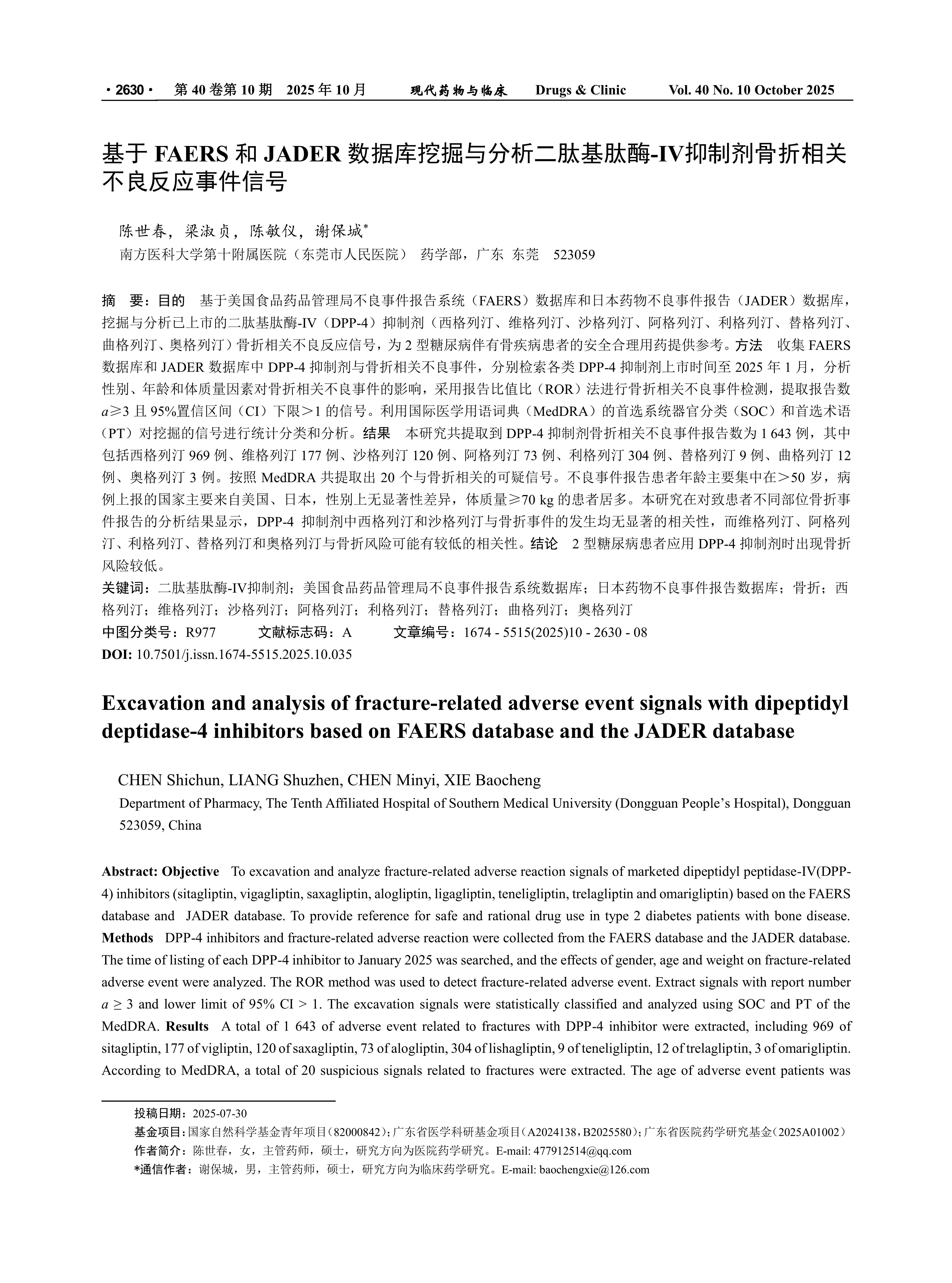 国家自然科学基金青年项目(82000842);广东省医学科研基金项目(A2024138,B2025580);广东省医院药学研究基金(2025A01002)