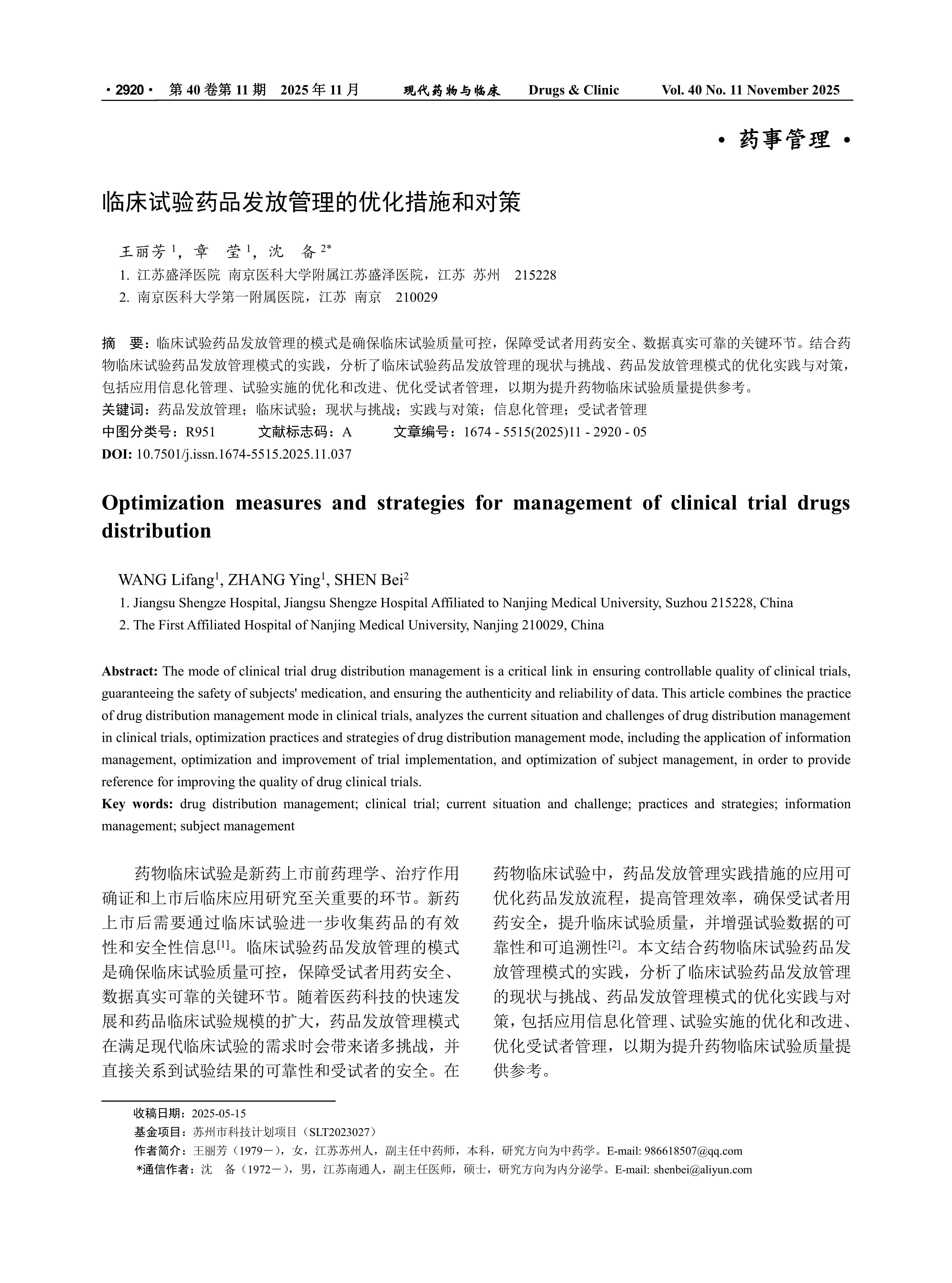 临床试验药品发放管理的模式是确保临床试验质量可控,保障受试者用药安全、数据真实可靠的关键环节。结合药物临床试验药品发放管理模式的实践,分析了临床试验药品发放管理的现状与挑战、药品发放管理模式的优化实践与对策,包括应用信息化管理、试验实施的优化和改进、优化受试者管理,以期为提升药物临床试验质量提供参考。
