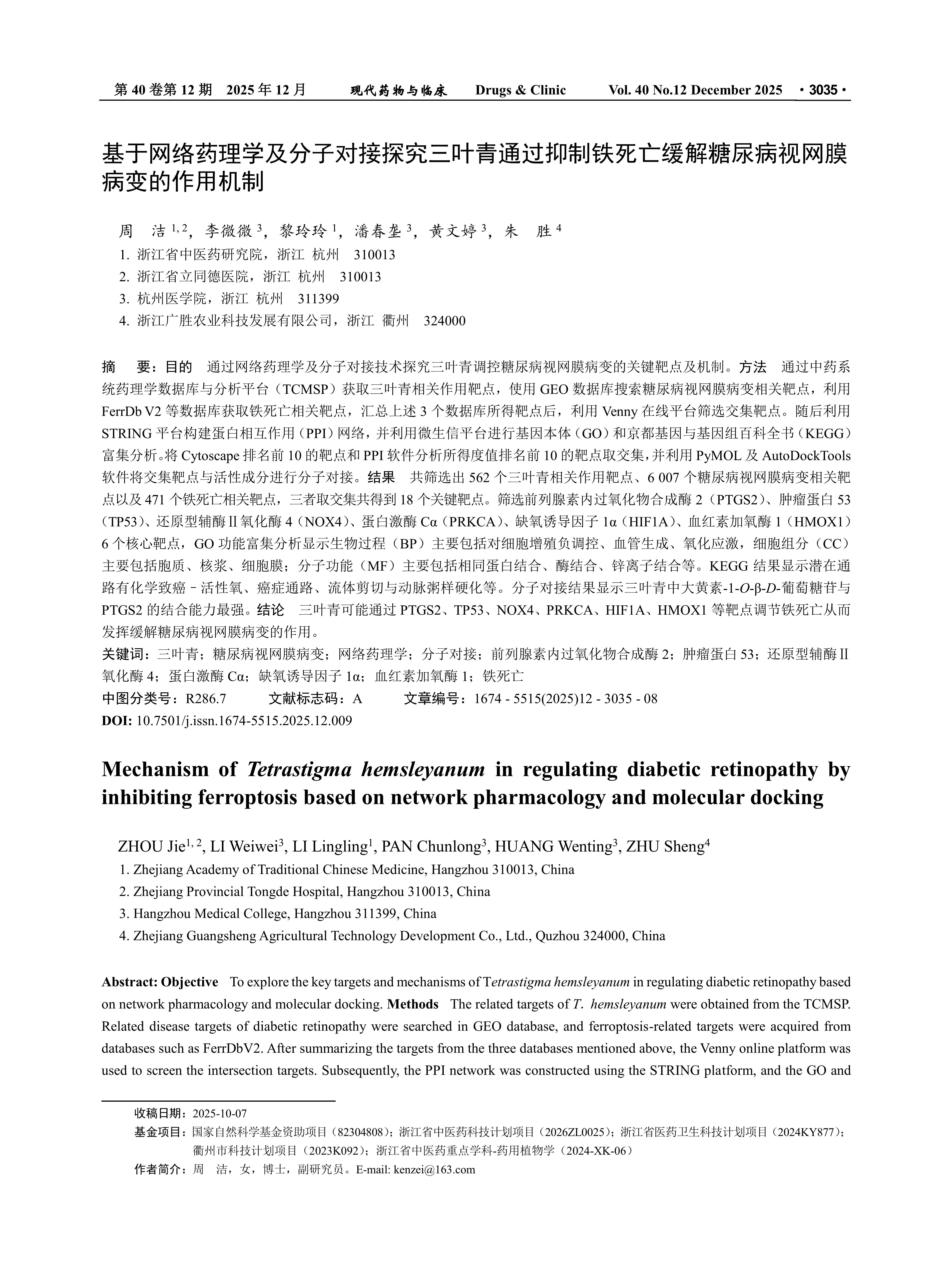 国家自然科学基金资助项目(82304808);浙江省中医药科技计划项目(2026ZL0025);浙江省医药卫生科技计划项目(2024KY877);衢州市科技计划项目(2023K092);浙江省中医药重点学科-药用植物学(2024-XK-06)