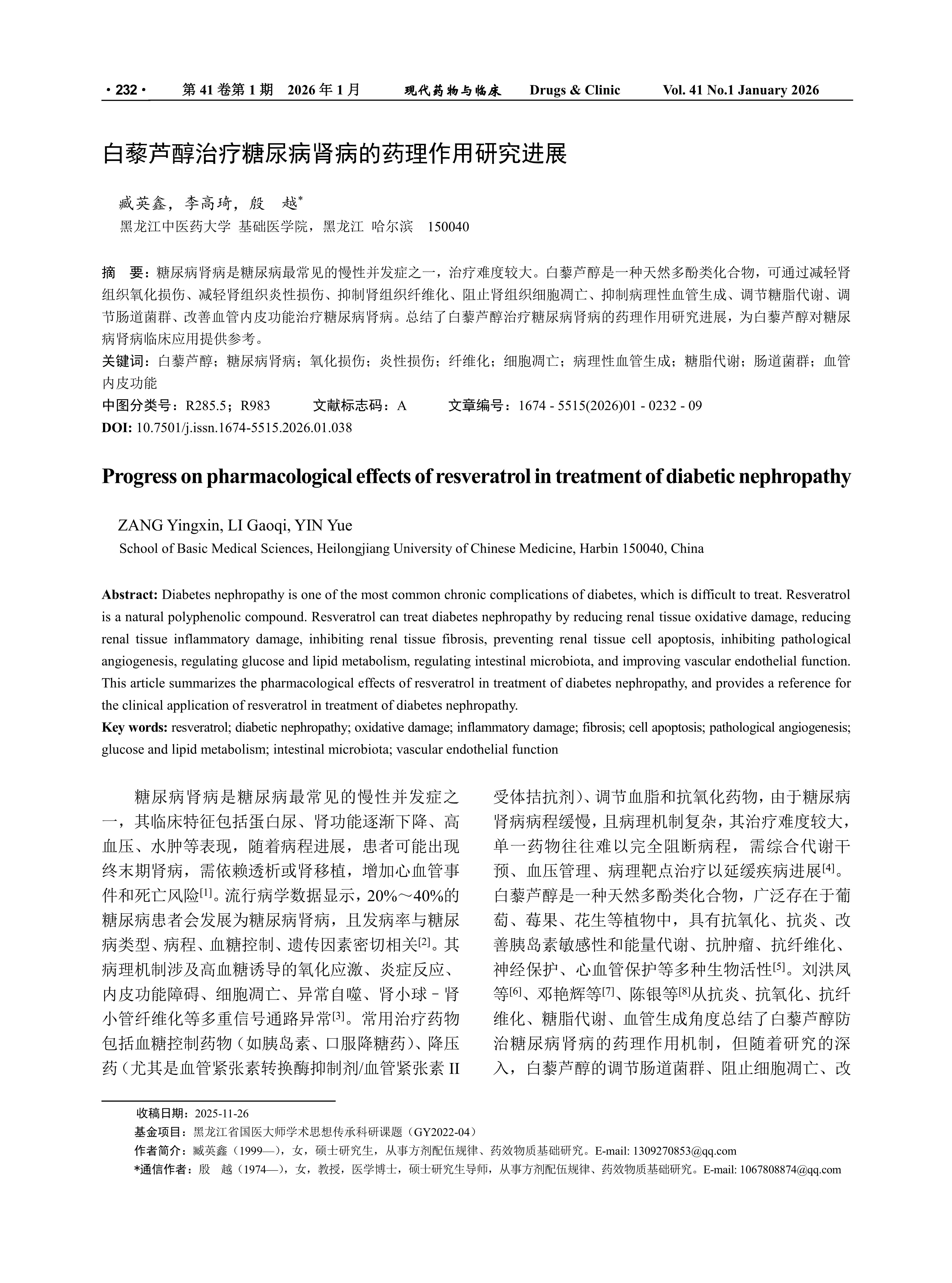 Progress on pharmacological effects of resveratrol in treatment of diabetic nephropathy