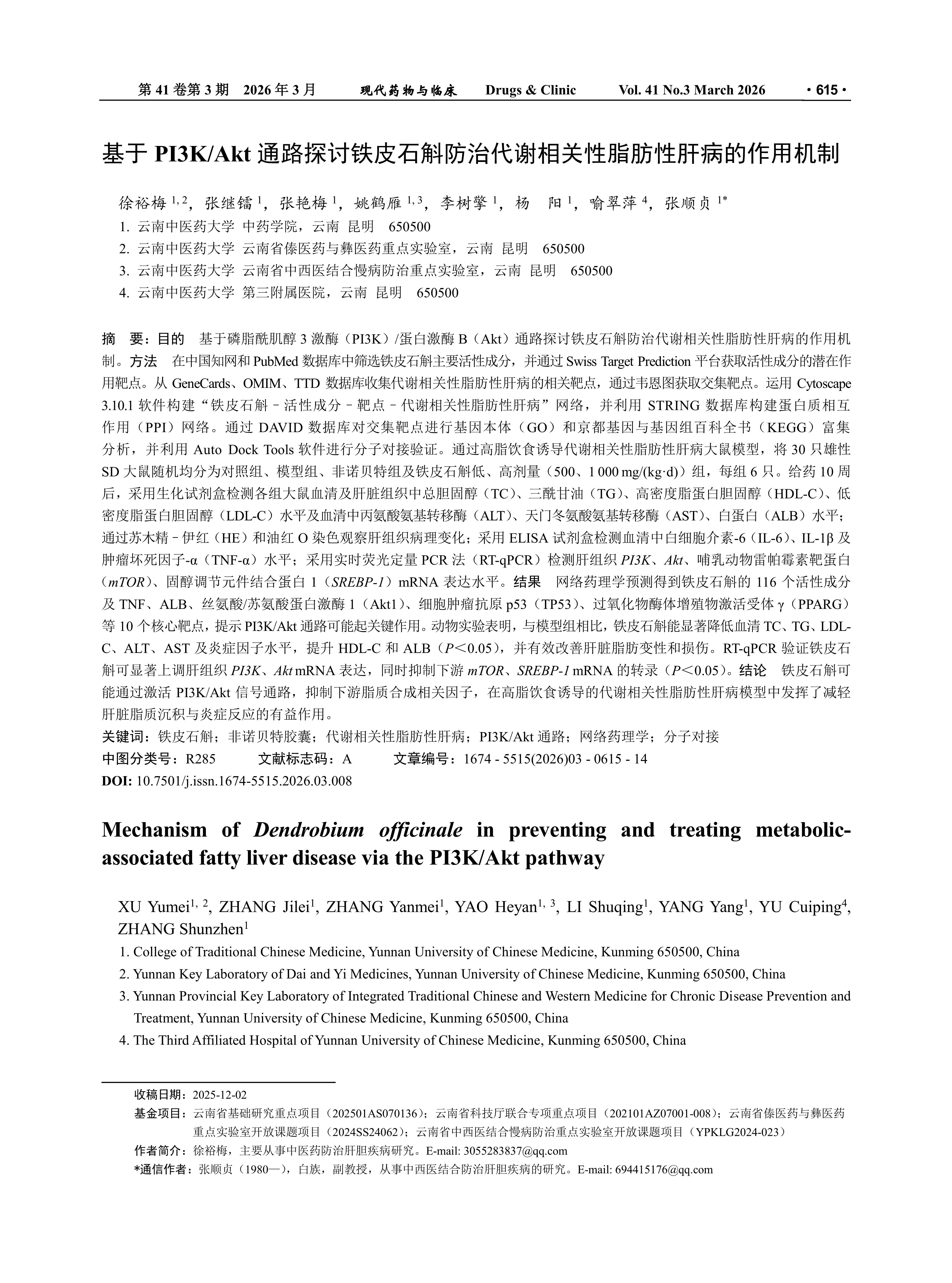 云南省基础研究重点项目(202501AS070136);云南省科技厅联合专项重点项目(202101AZ07001-008);云南省傣医药与彝医药重点实验室开放课题项目(2024SS24062);云南省中西医结合慢病防治重点实验室开放课题项目(YPKLG2024-023)