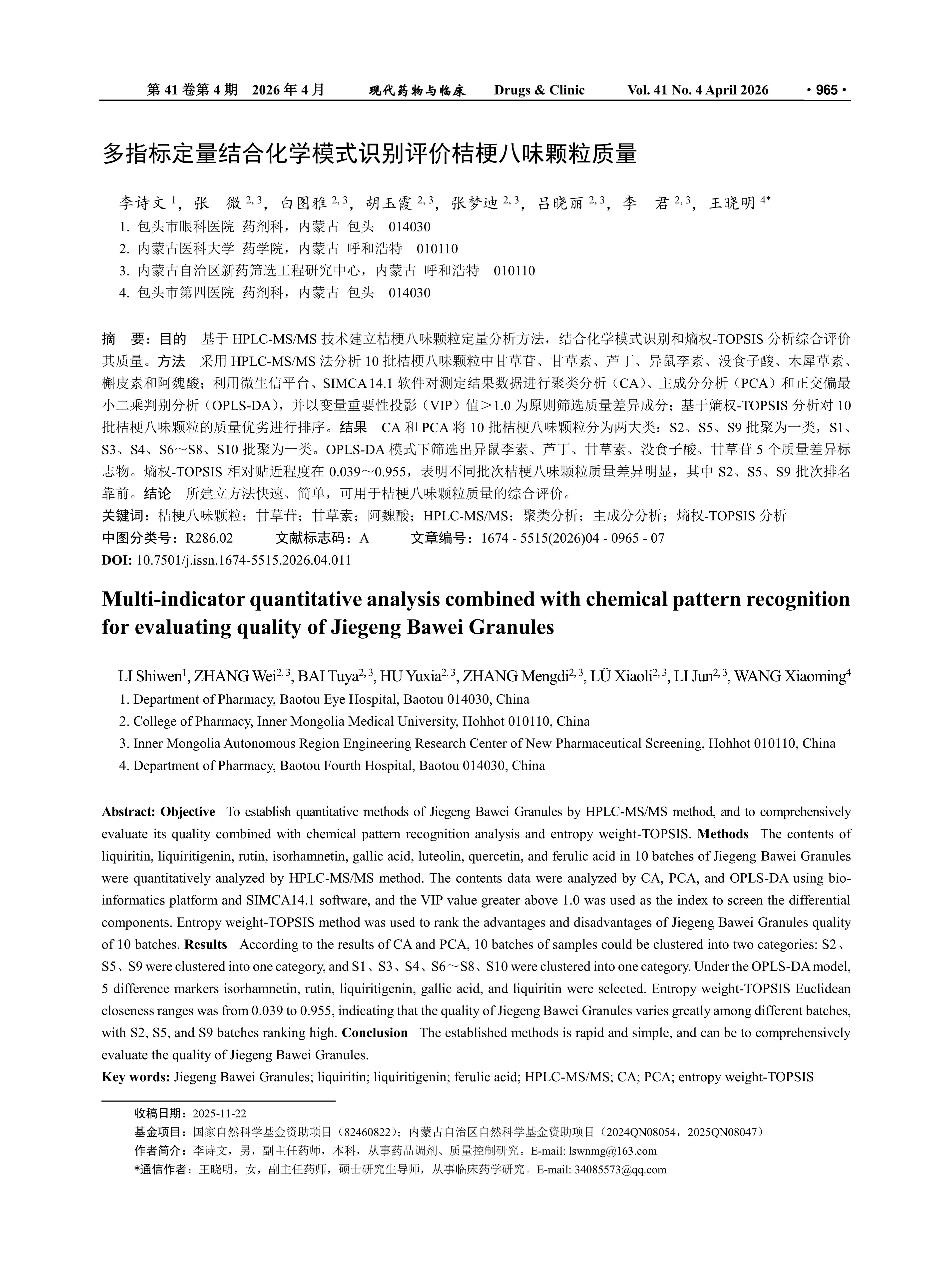 首页 > 过刊浏览>2026年第41卷第4期 >2026,41(4):965-971. DOI:10.7501/j.issn.1674-5515.2026.04.011