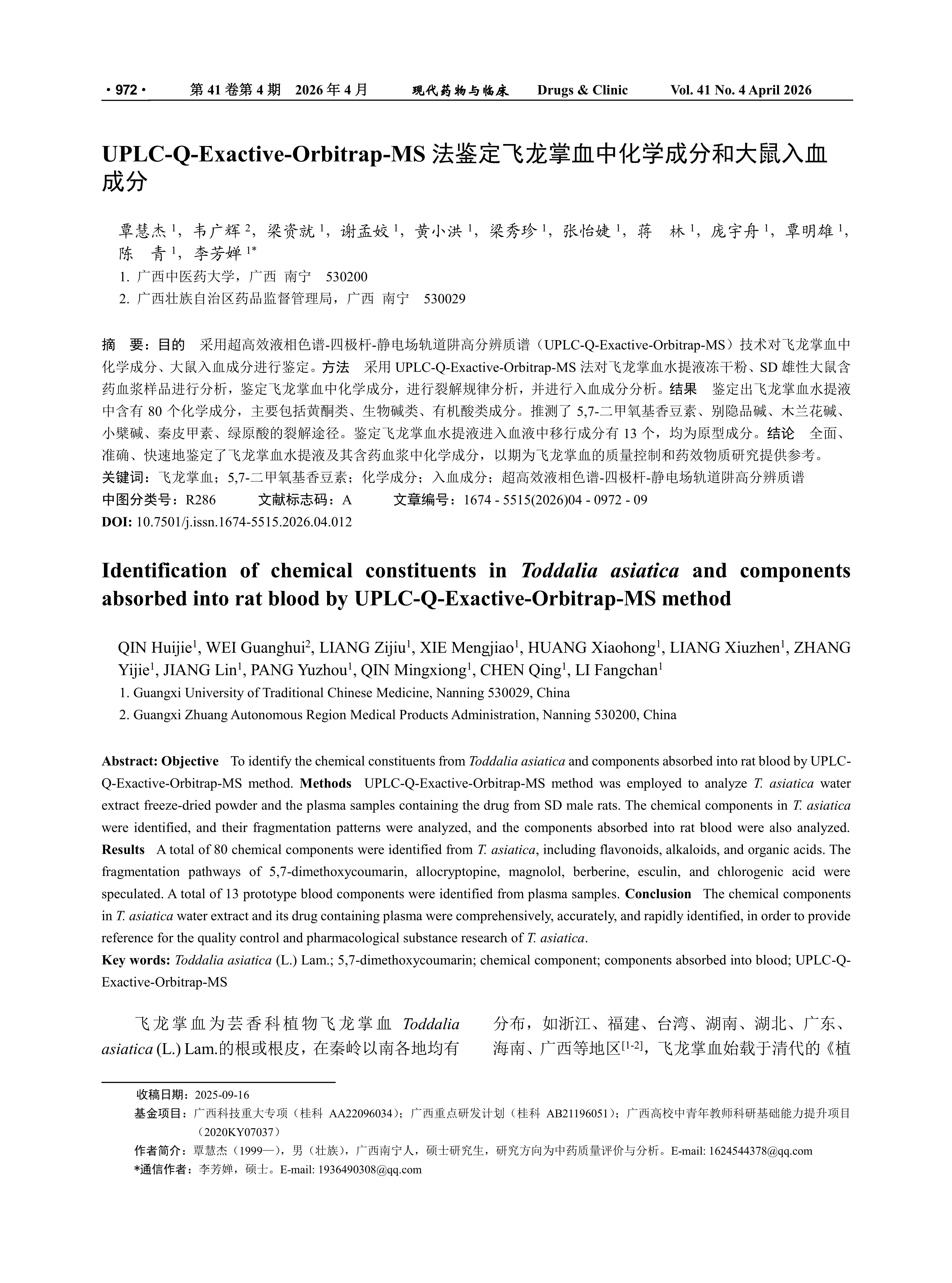 首页 > 过刊浏览>2026年第41卷第4期 >2026,41(4):972-980. DOI:10.7501/j.issn.1674-5515.2026.04.012