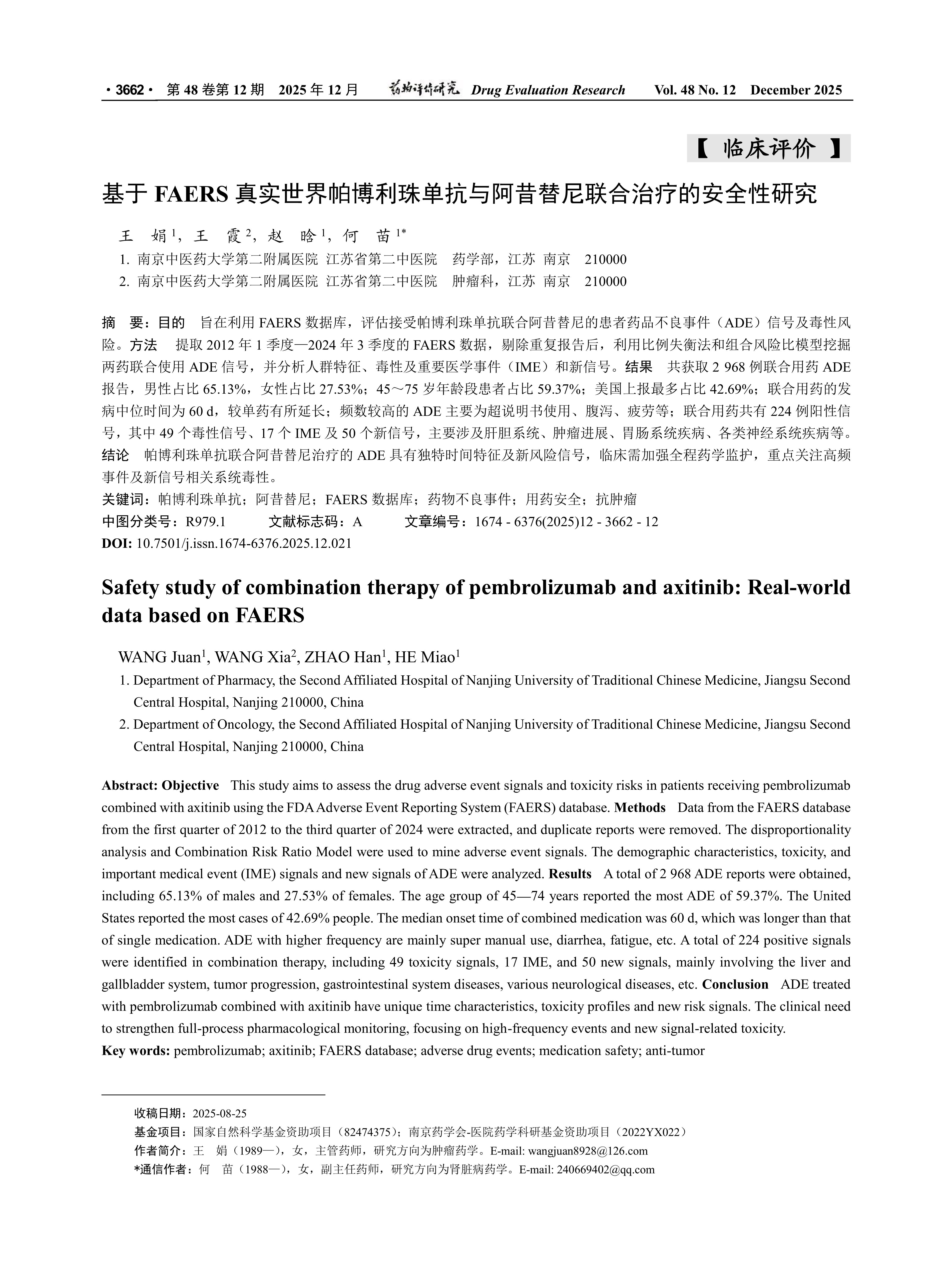 国家自然科学基金资助项目(82474375); 南京药学会-医院药学科研基金资助项目(2022YX022)