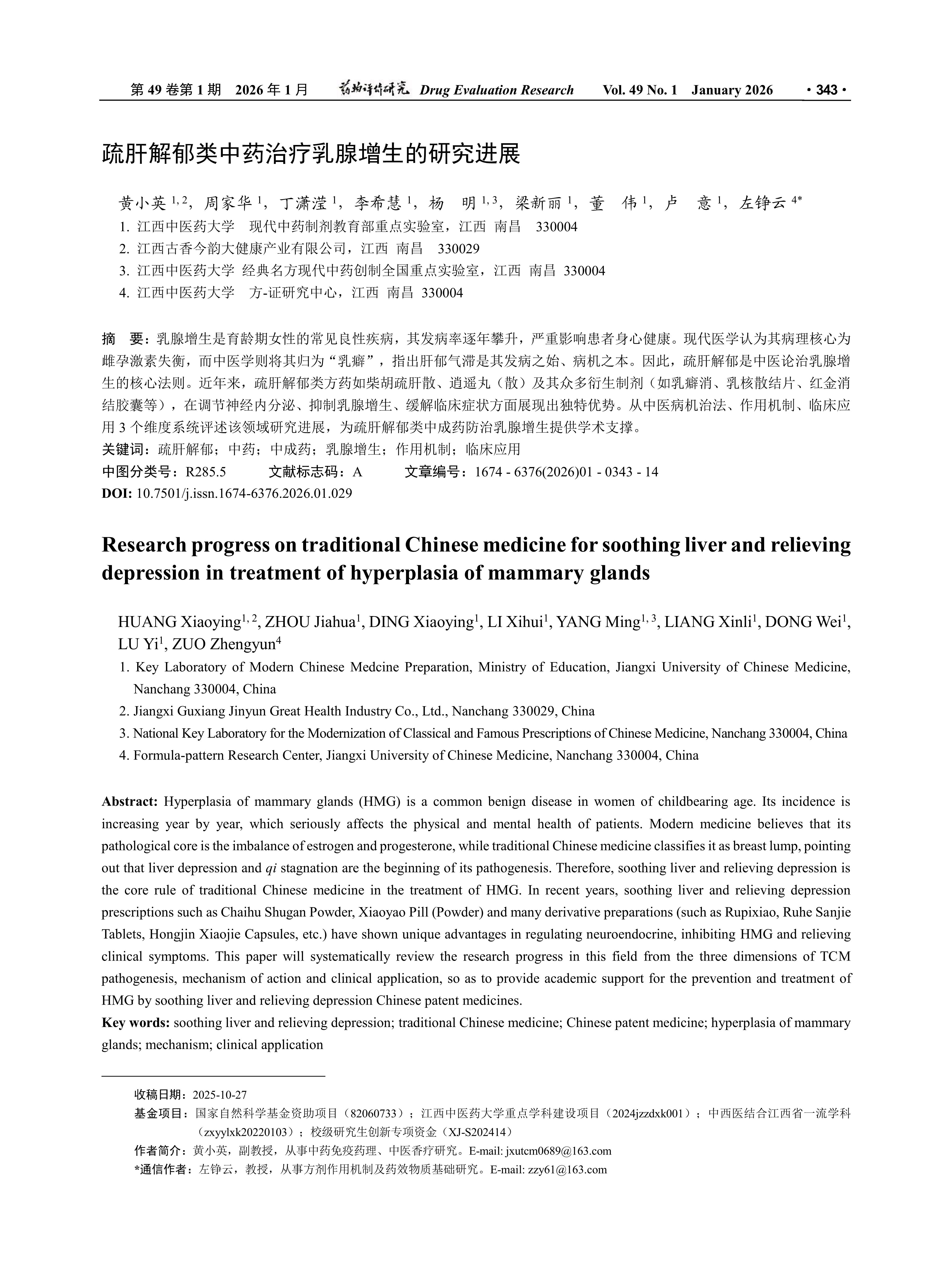 国家自然科学基金资助项目(82060733); 江西中医药大学重点学科建设项目(2024jzzdxk001); 中西医结合江西省一流学科(zxyylxk20220103); 校级研究生创新专项资金(XJ-S202414)