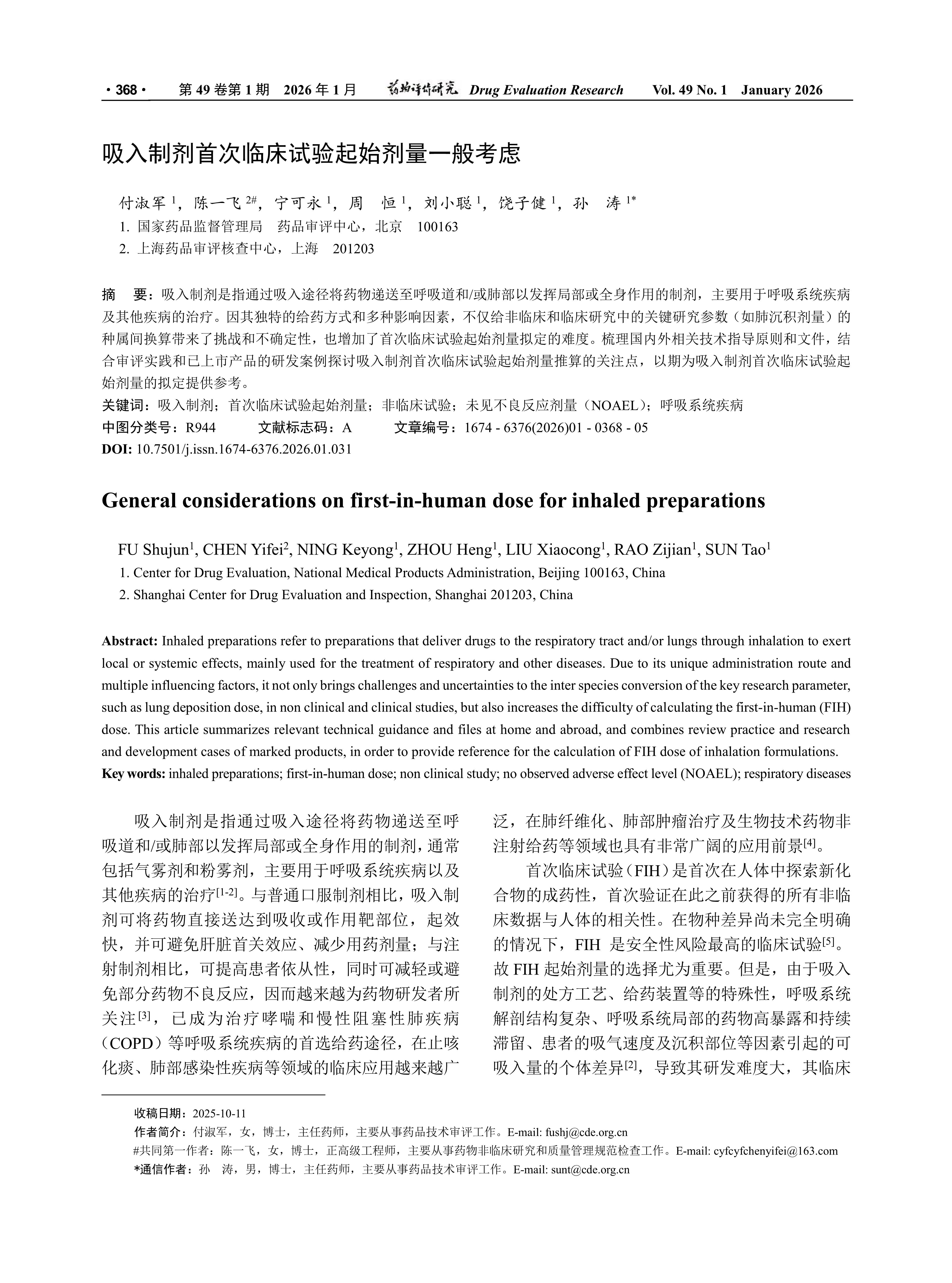 Inhaled preparations refer to preparations that deliver drugs to the respiratory tract and/or lungs through inhalation to exert local or systemic effects, mainly used for the treatment of respiratory and other diseases. Due to its unique administration route and multiple influencing factors, it not only brings challenges and uncertainties to the inter species conversion of the key research parameter, such as lung deposition dose, in non clinical and clinical studies, but also increases the difficulty of calculating the first-in-human(FIH) dose. This article summarizes relevant technical guidance and files at home and abroad, and combines review practice and research and development cases of marked products, in order to provide reference for the calculation of FIH dose of inhalation formulations.
