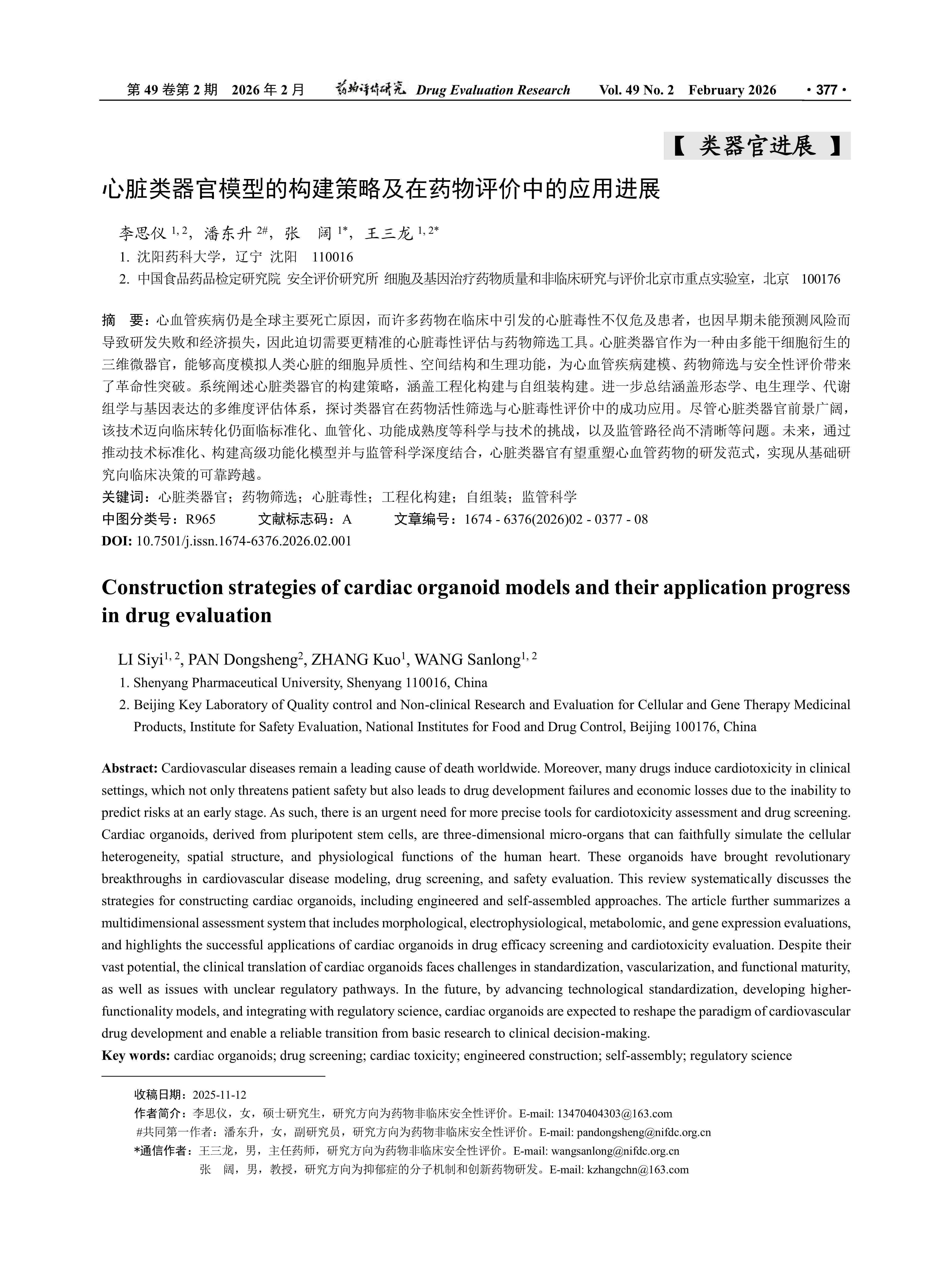 心脏类器官模型的构建策略及在药物评价中的应用进展