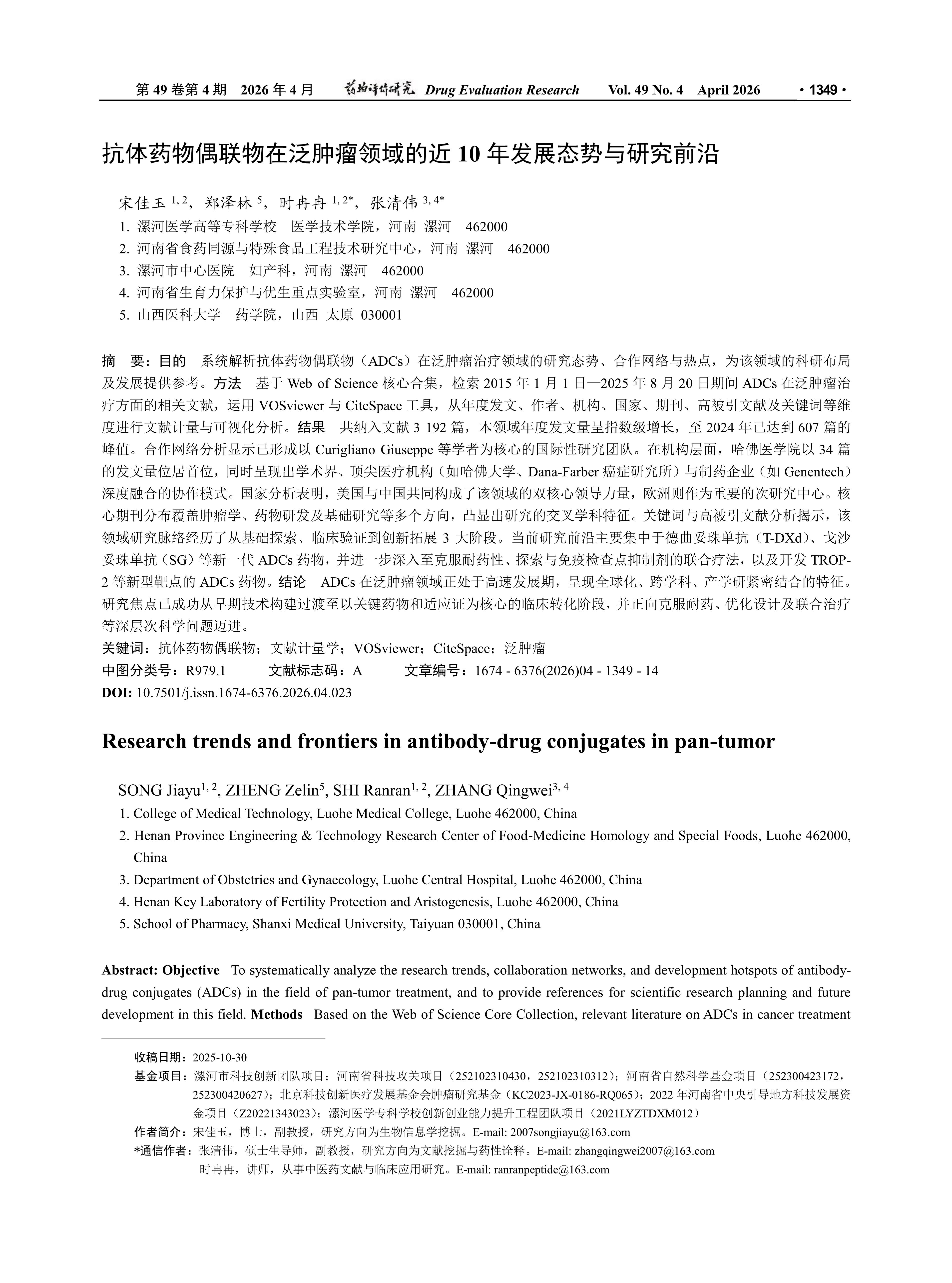 抗体药物偶联物在泛肿瘤领域的近10年发展态势与研究前沿