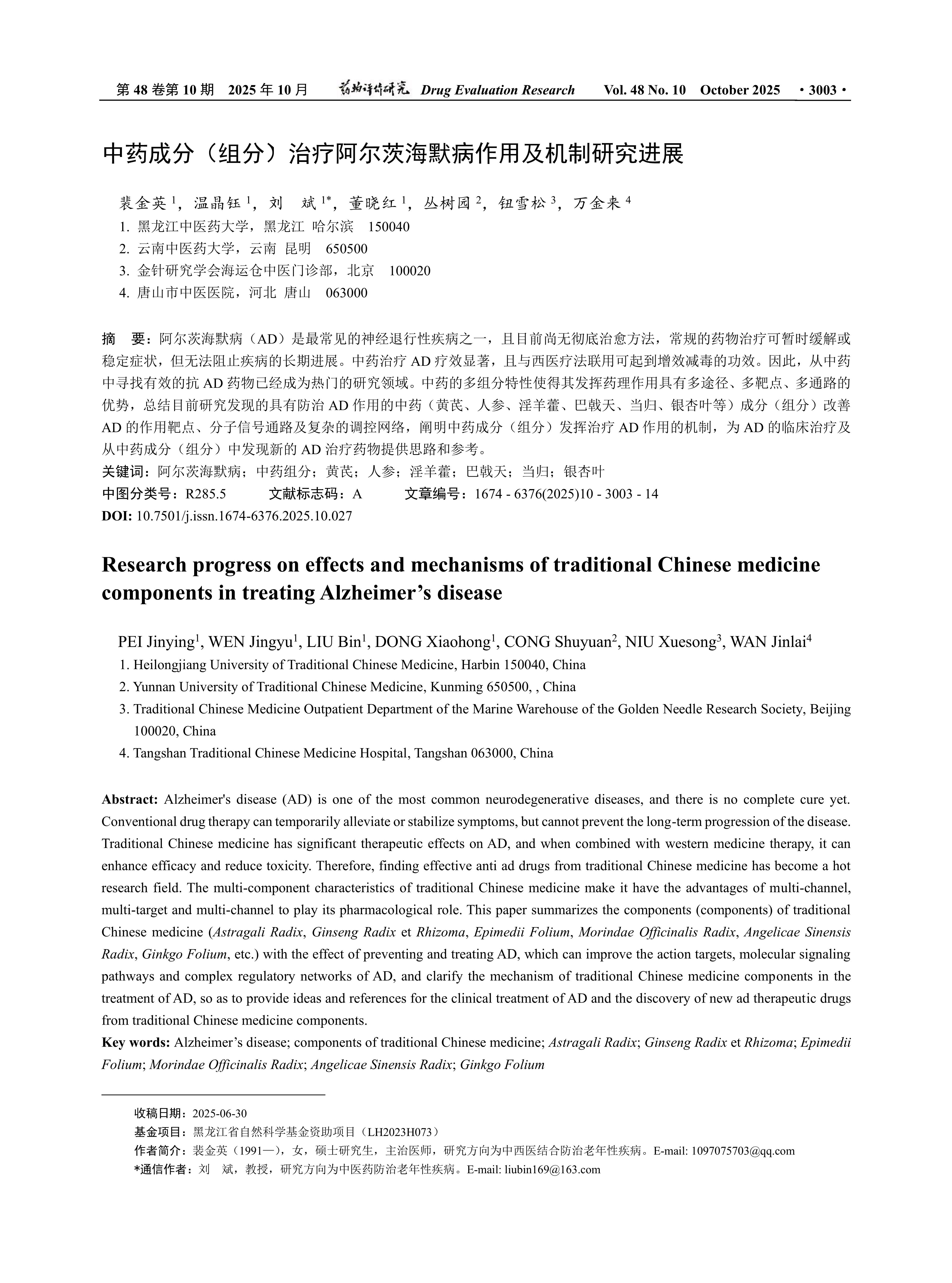 中药成分(组分)治疗阿尔茨海默病作用及机制研究进展