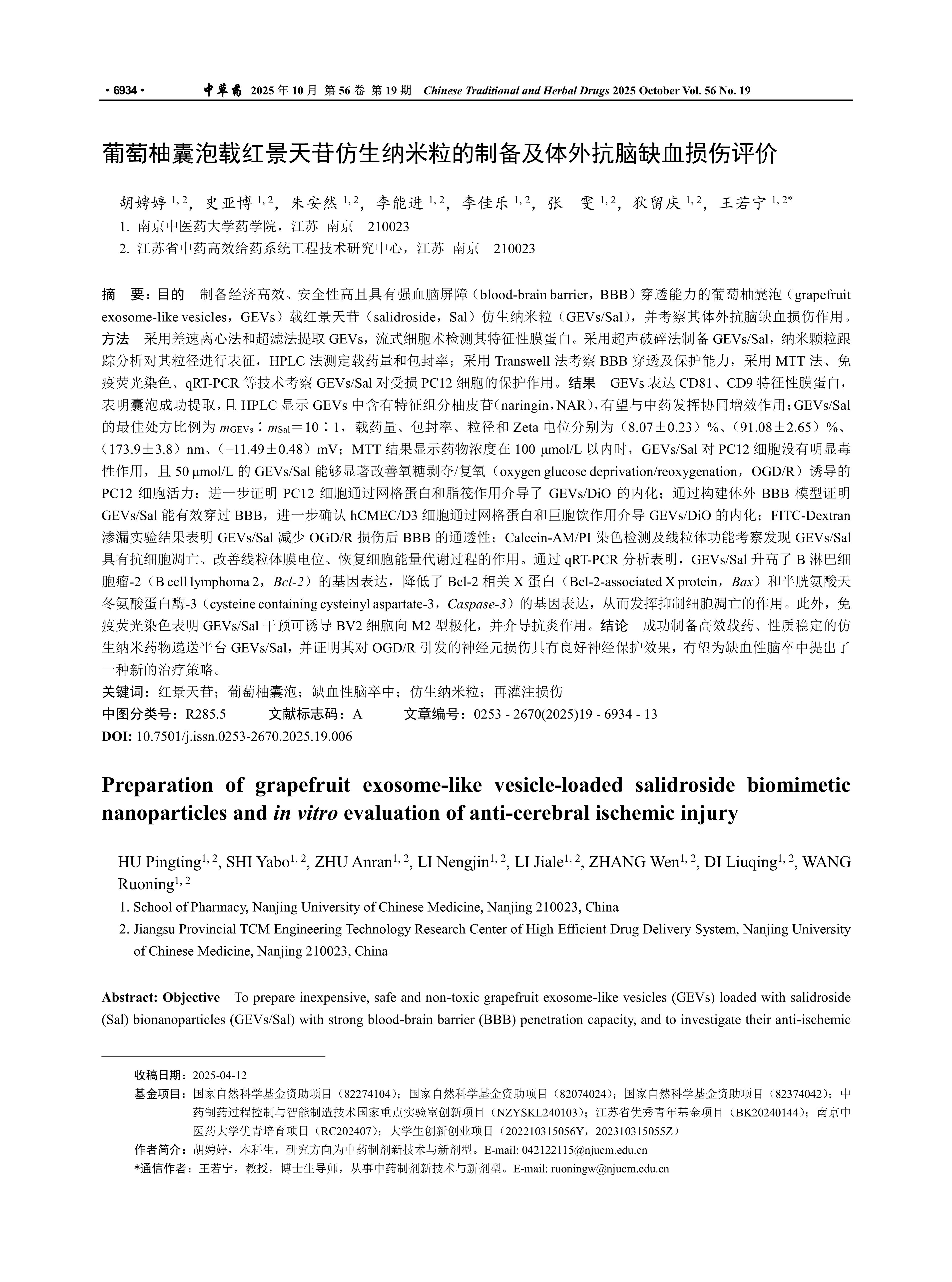 国家自然科学基金资助项目(82274104);国家自然科学基金资助项目(82074024);国家自然科学基金资助项目(82374042);中药制药过程控制与智能制造技术国家重点实验室创新项目(NZYSKL240103);江苏省优秀青年基金项目(BK20240144);南京中医药大学优青培育项目(RC202407);大学生创新创业项目(202210315056Y,202310315055Z)