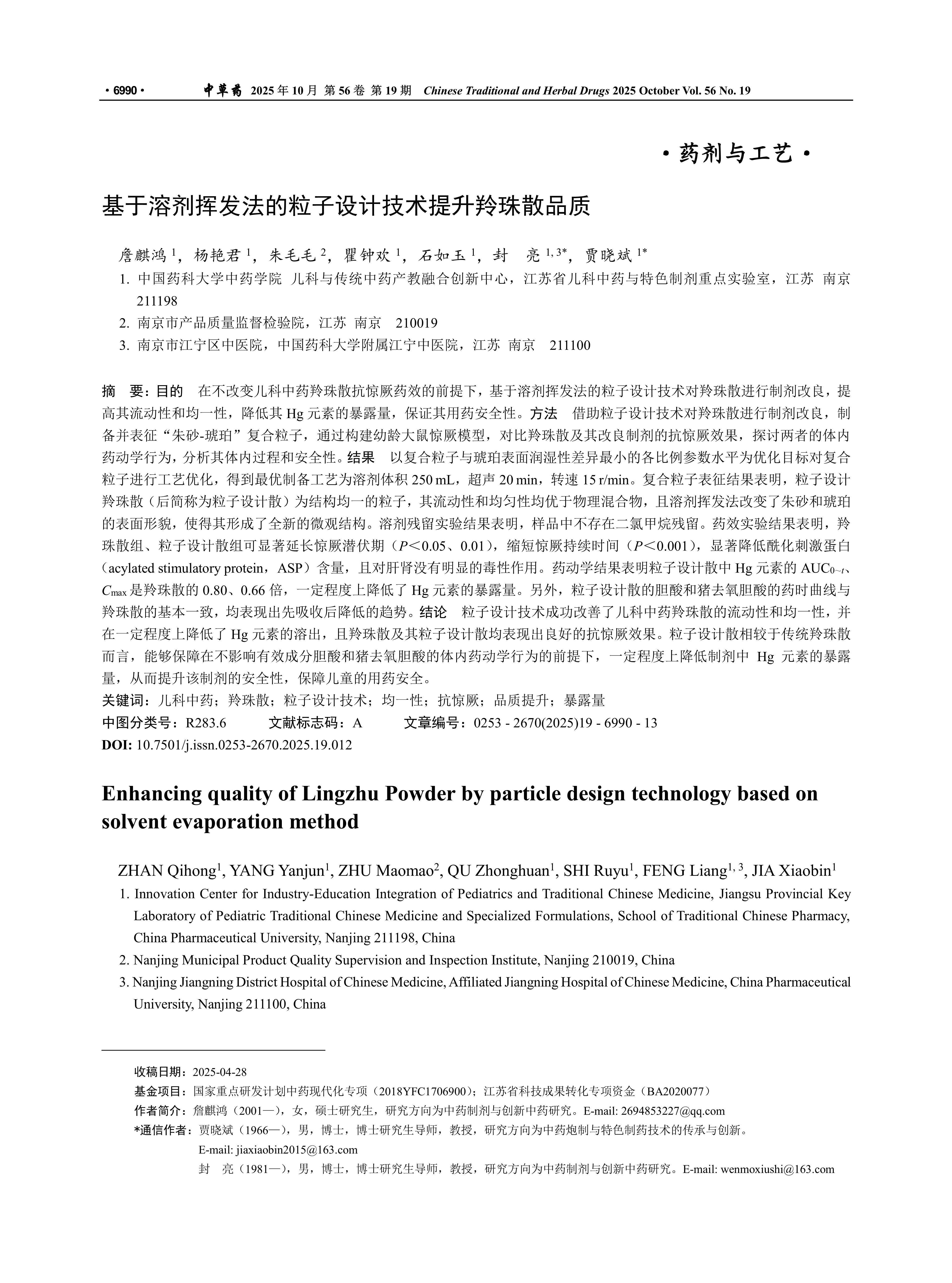 基于溶剂挥发法的粒子设计技术提升羚珠散品质