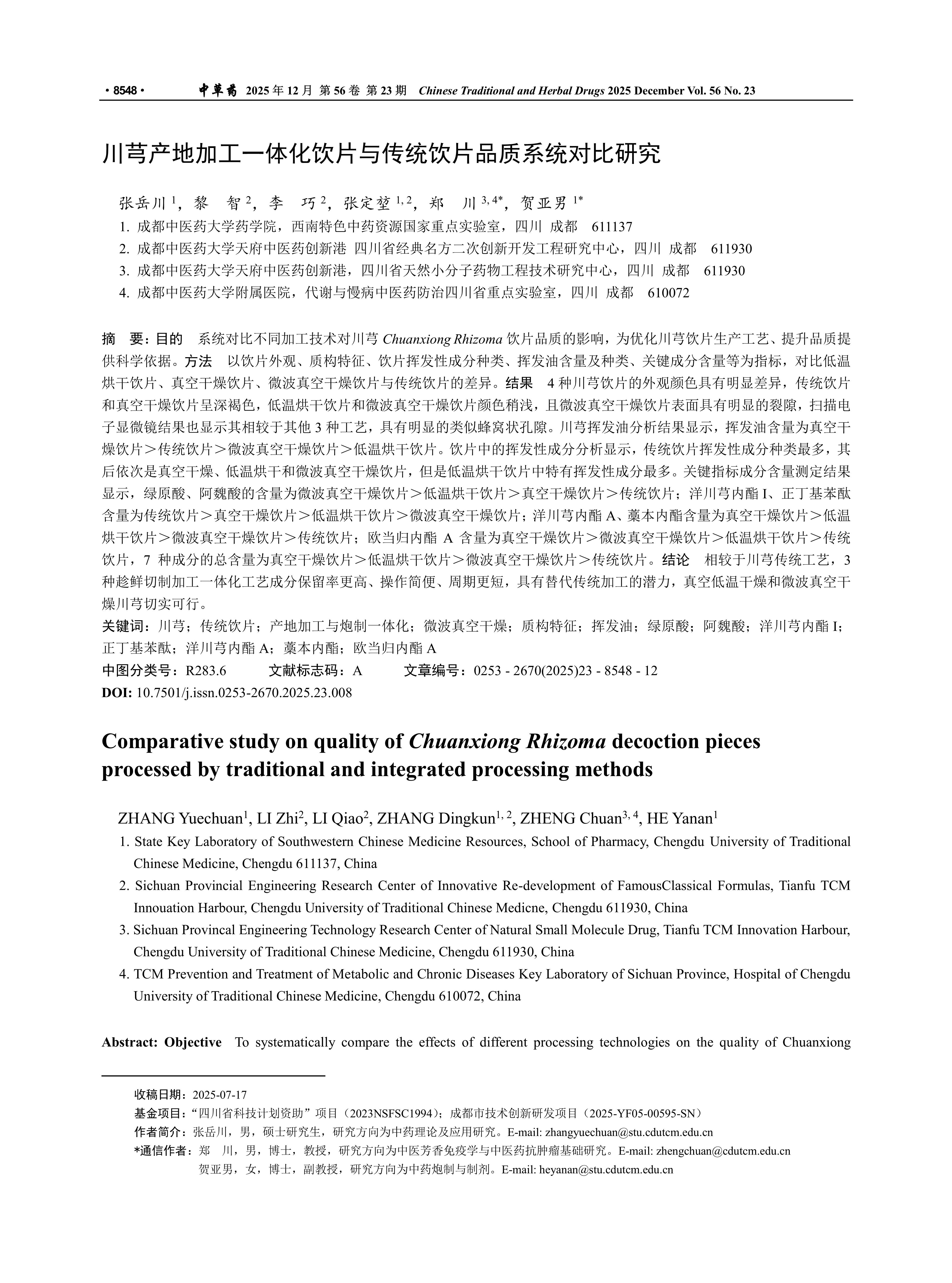 川芎产地加工一体化饮片与传统饮片品质系统对比研究