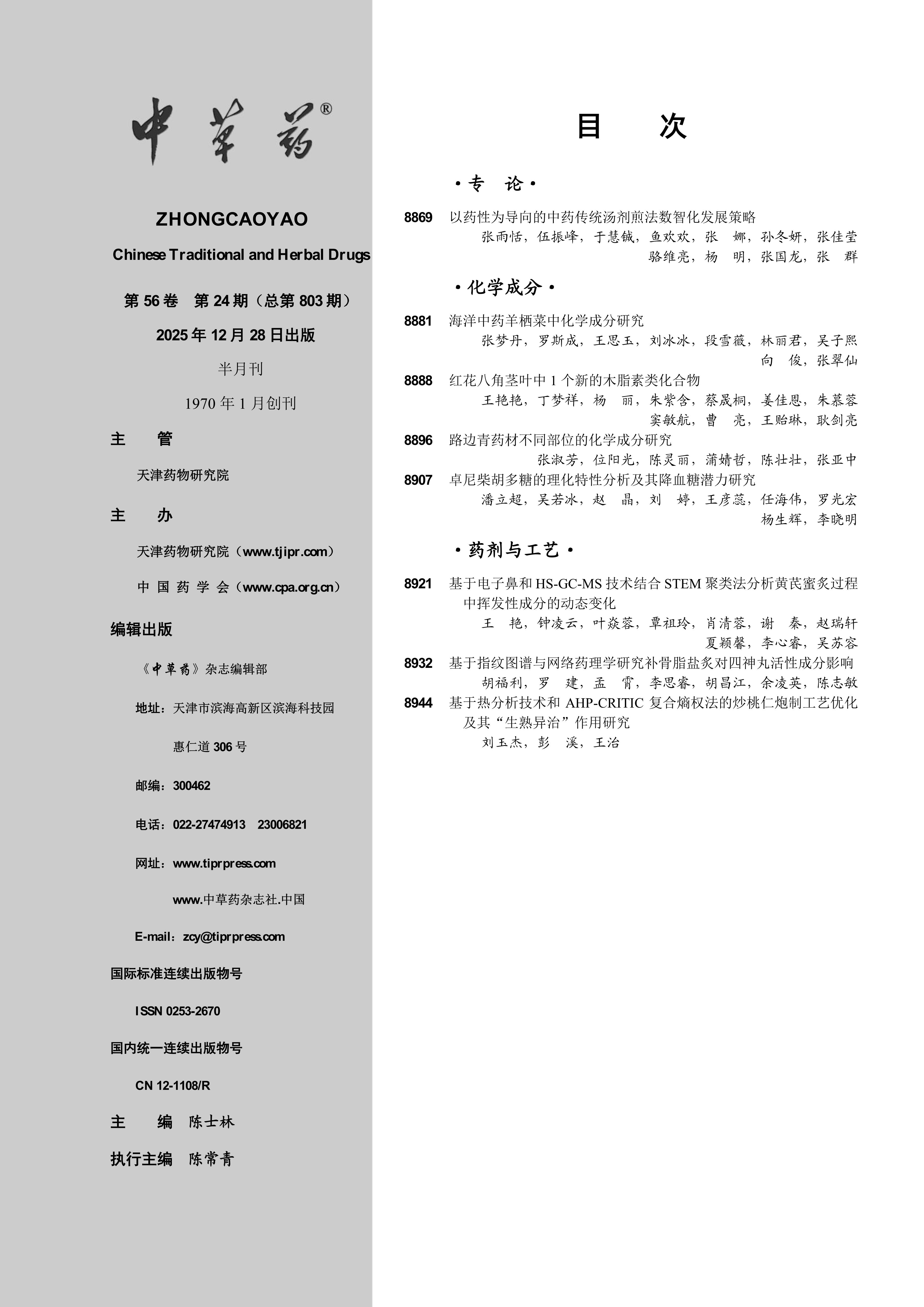 首页 > 过刊浏览>2025年第56卷第24期 >2025,56(24):1-1