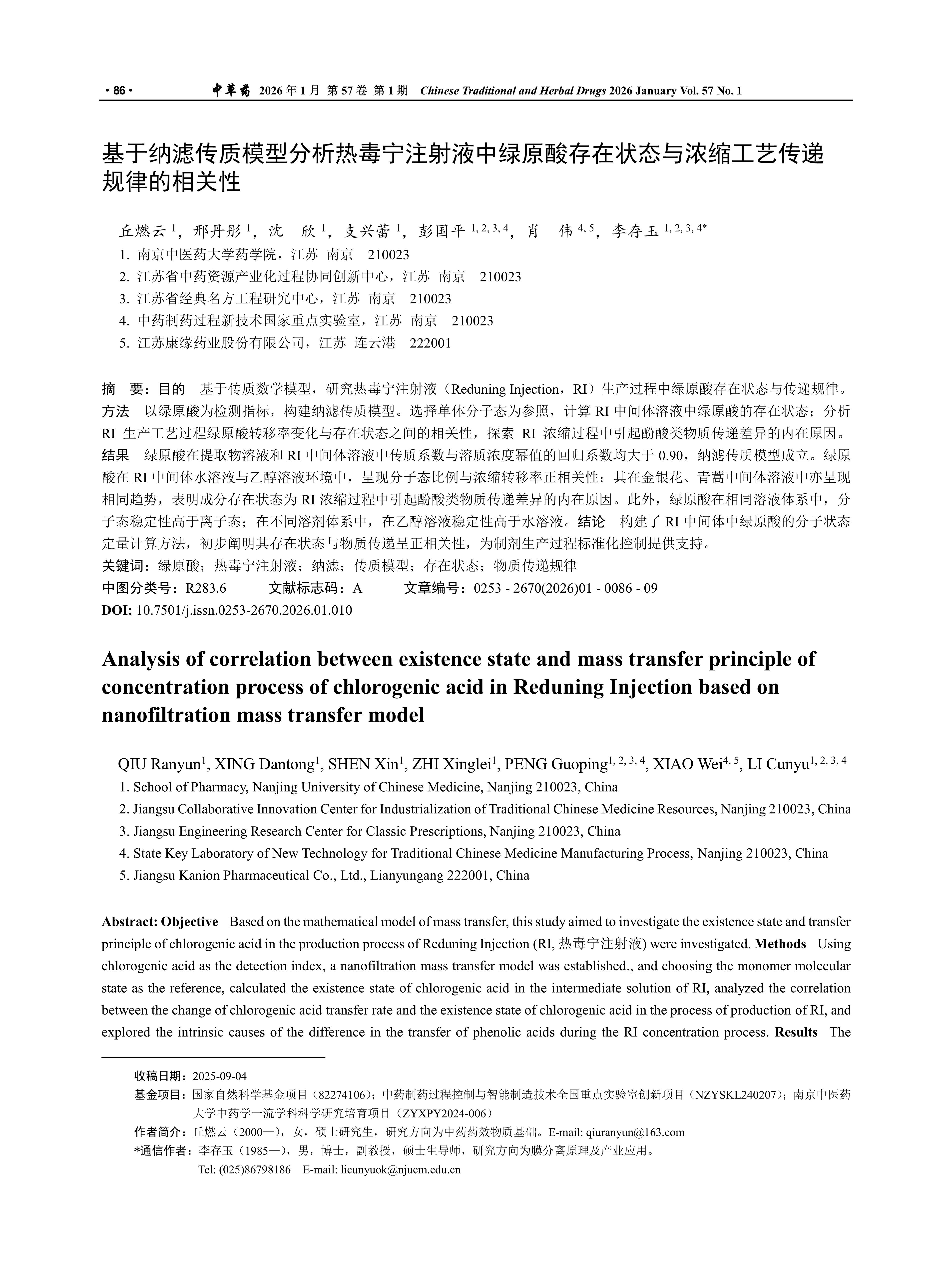 国家自然科学基金项目(82274106);中药制药过程控制与智能制造技术全国重点实验室创新项目(NZYSKL240207);南京中医药大学中药学一流学科科学研究培育项目(ZYXPY2024-006)