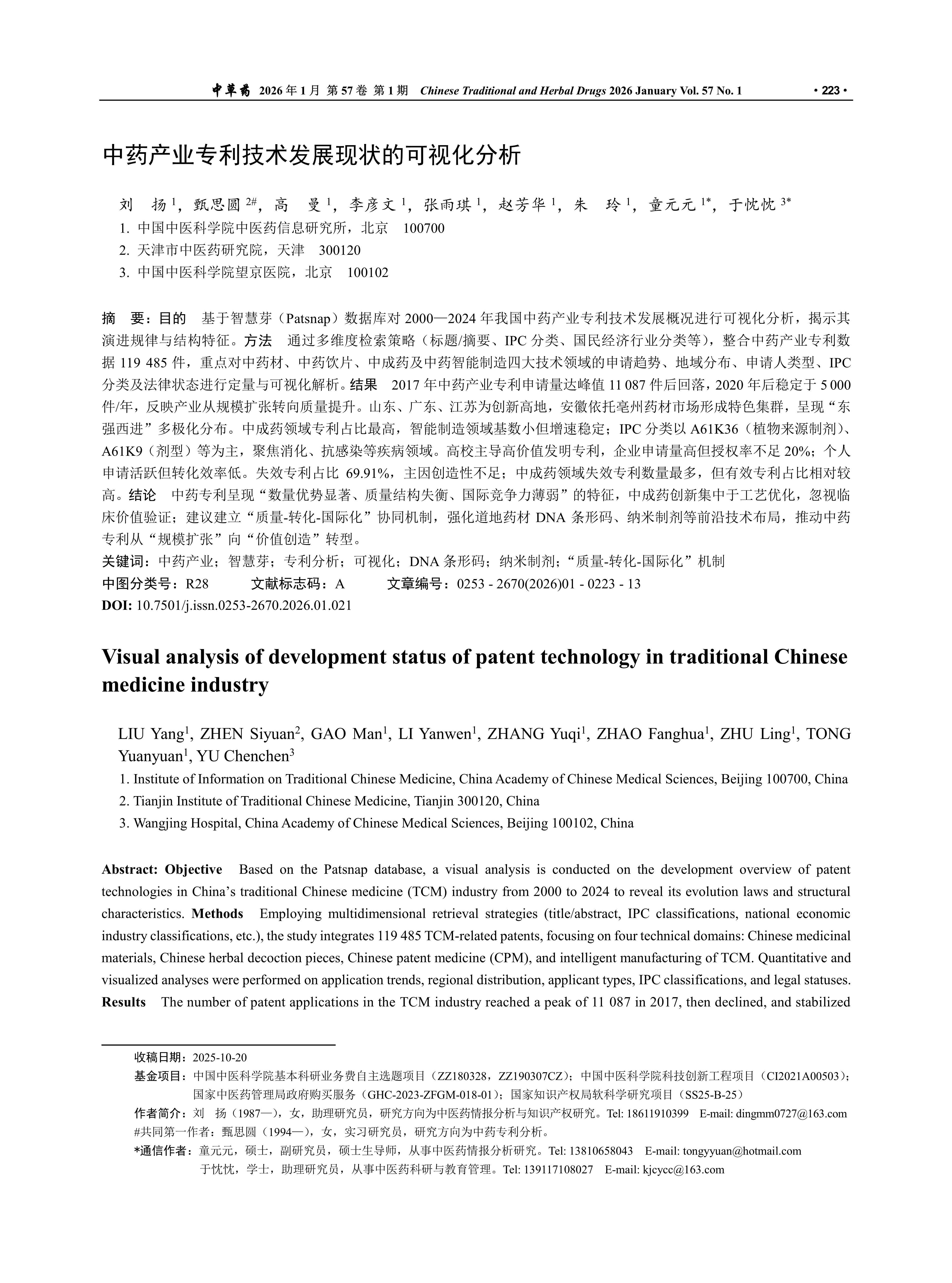 中国中医科学院基本科研业务费自主选题项目(ZZ180328,ZZ190307CZ);中国中医科学院科技创新工程项目(CI2021A00503);国家中医药管理局政府购买服务(GHC-2023-ZFGM-018-01);国家知识产权局软科学研究项目(SS25-B-25)