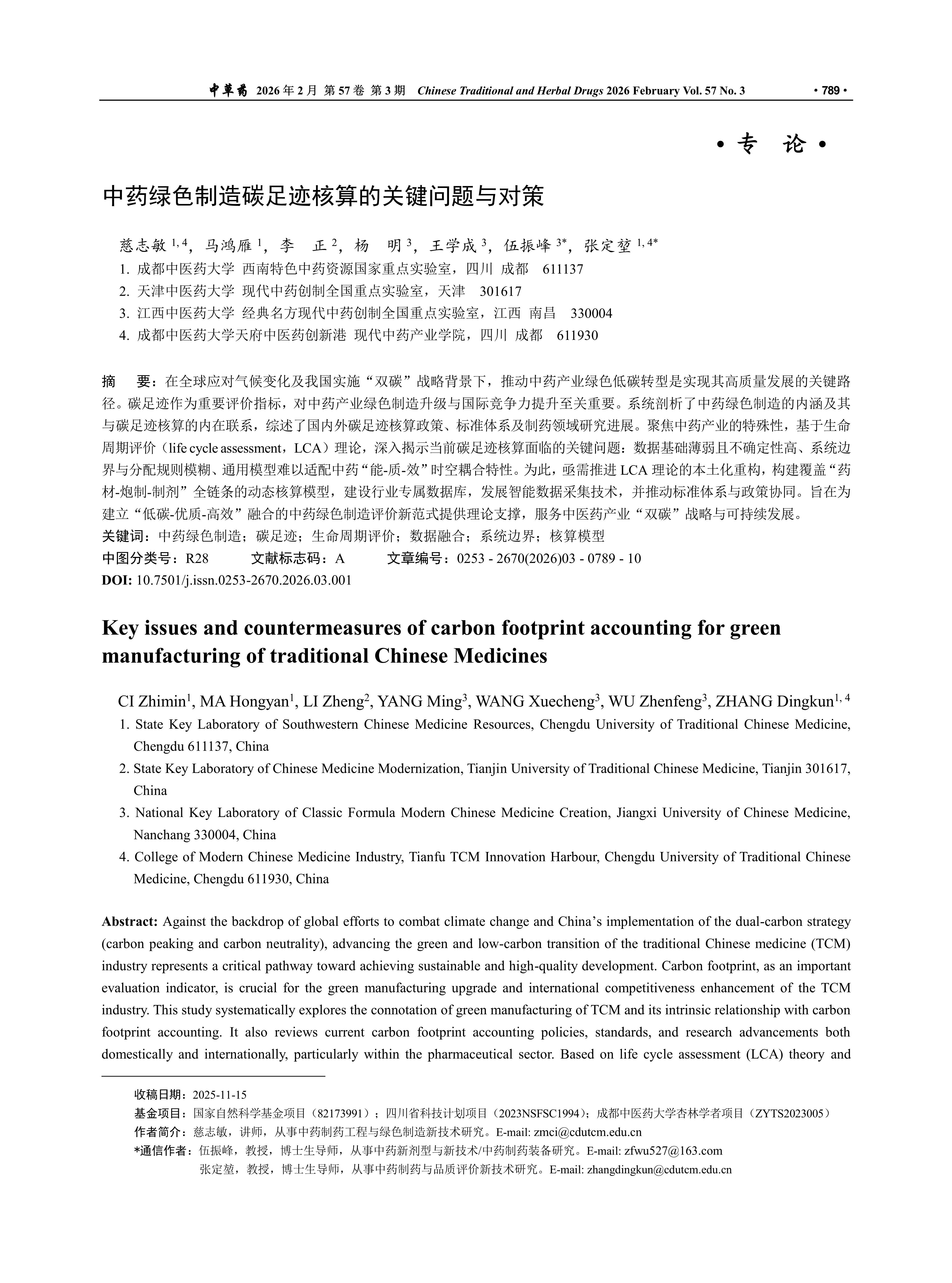 Key issues and countermeasures of carbon footprint accounting for green manufacturing of traditional Chinese Medicines