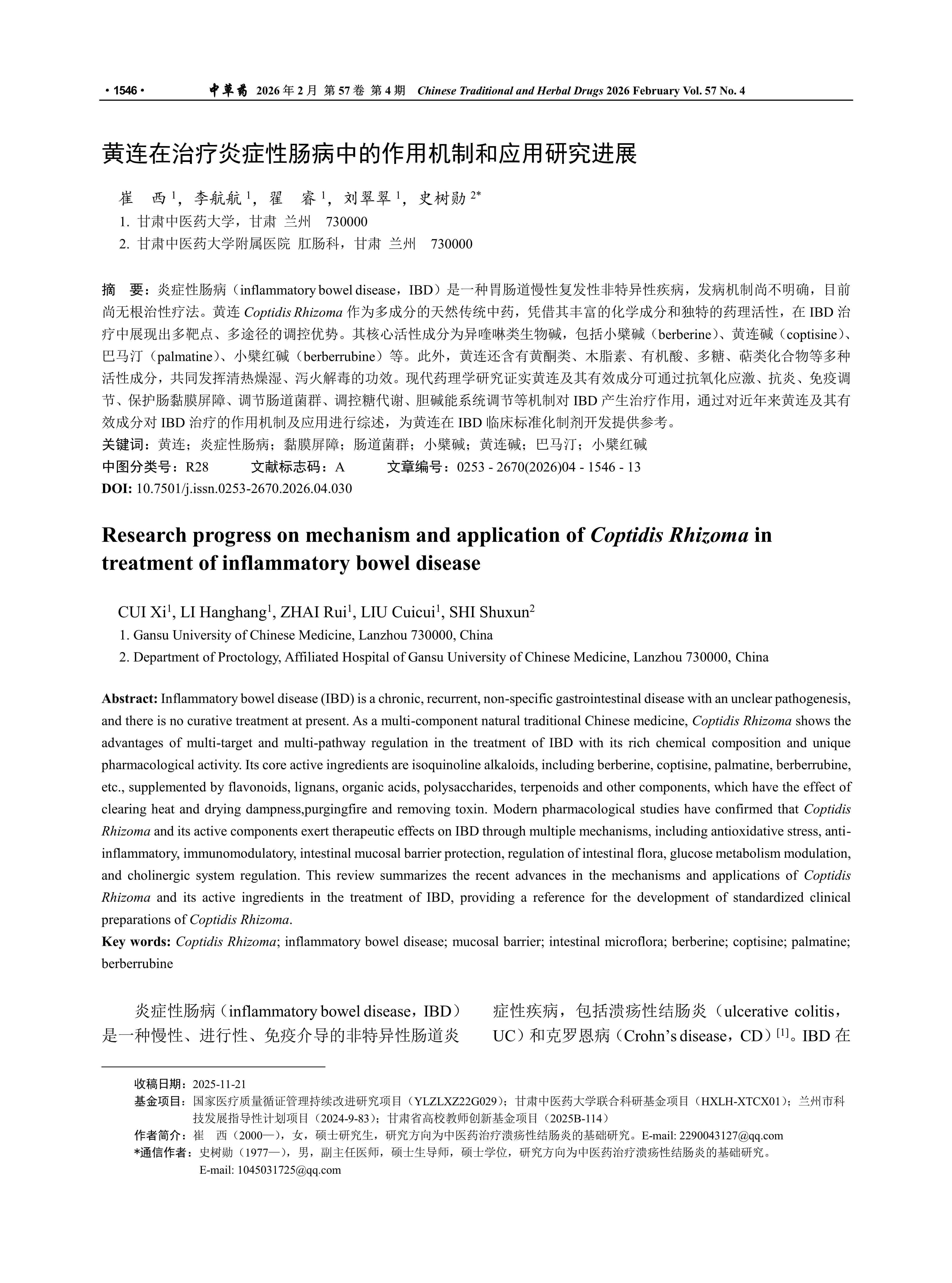 首页 > 过刊浏览>2026年第57卷第4期 >2026,57(4):1546-1558. DOI:10.7501/j.issn.0253-2670.2026.04.030