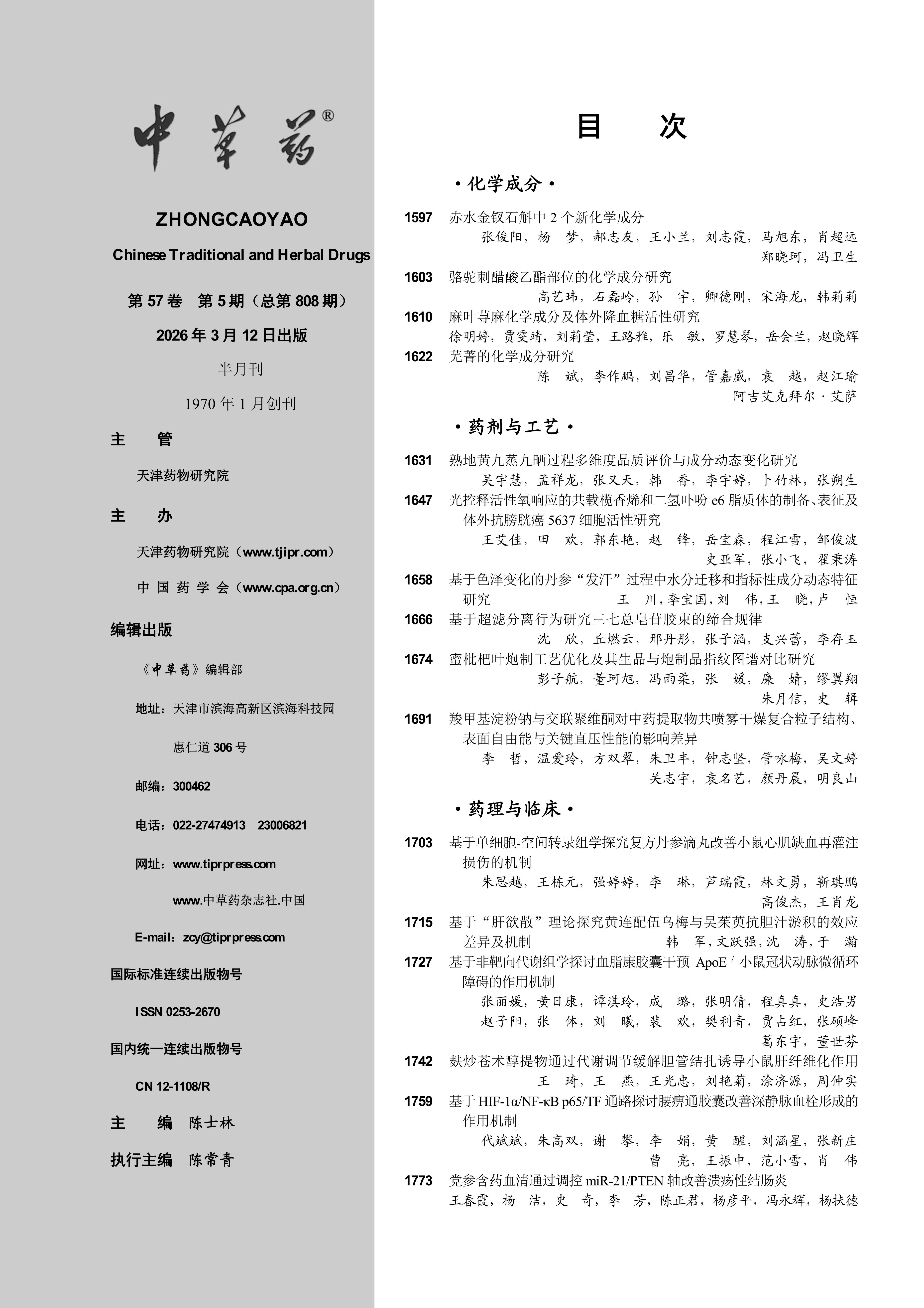 首页 > 过刊浏览>2026年第57卷第5期 >2026,57(5):1-1