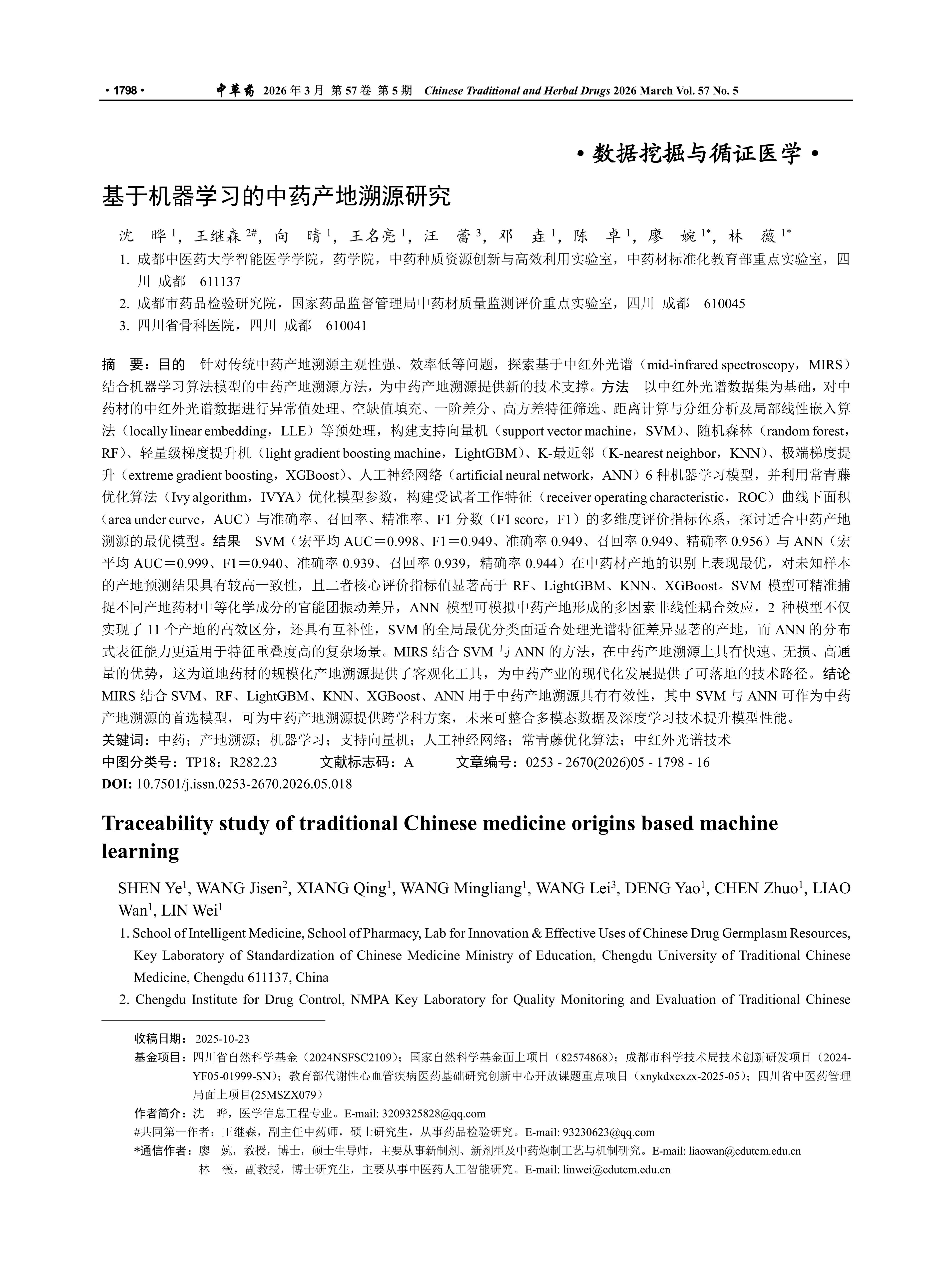 基于机器学习的中药产地溯源研究