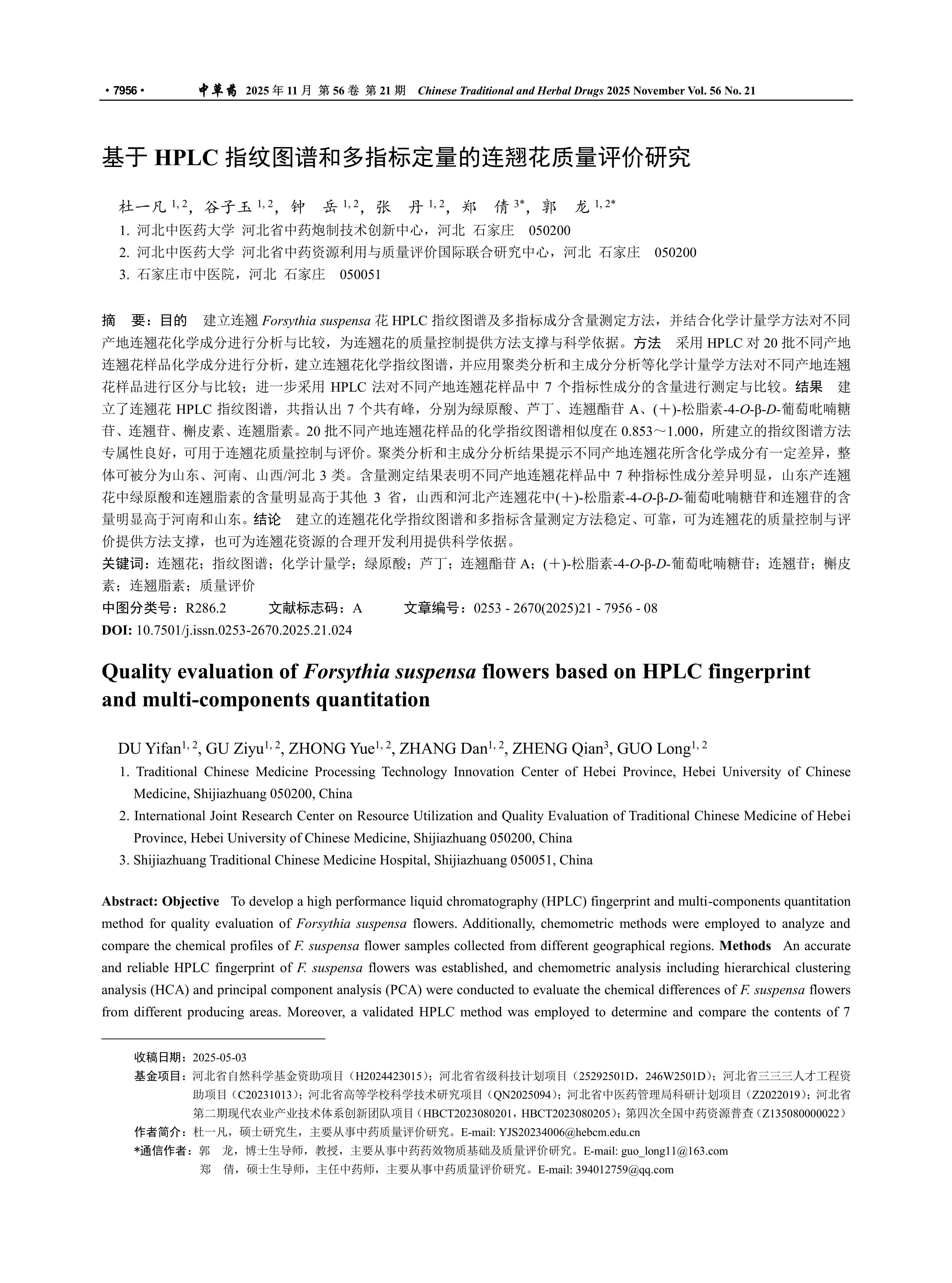 河北省自然科学基金资助项目(H2024423015);河北省省级科技计划项目(25292501D,246W2501D);河北省三三三人才工程资助项目(C20231013);河北省高等学校科学技术研究项目(QN2025094);河北省中医药管理局科研计划项目(Z2022019);河北省第二期现代农业产业技术体系创新团队项目(HBCT2023080201,HBCT2023080205);第四次全国中药资源普查(Z135080000022)