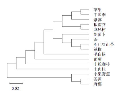 PAL基因与植物酚类、类黄酮、木质素等次生代谢产物的合成密切相关[11]。植物PAL基因为多基因家族所编码,PAL基因的表达受发育和环境信号(如温度、光质、机械损伤、激素和营养等)的调节,表现出严格的组织和发育特异性[12, 13]。目前已从多种植物中克隆到PAL基因并进行了表达分析[14, 15],但在姜黄中尚未见到包括PAL基因在内的苯丙烷类代谢途径中相关酶基因的报道。本研究以姜黄叶片为材料,开展姜黄PAL基因(CurPAL)全长cDNA的克隆,并进行序列分析和系统进化等生物信息学方面的研究,为PAL基因功能分析和遗传转化奠定基础,为姜黄次生代谢产物的生物合成机制提供理论依据。