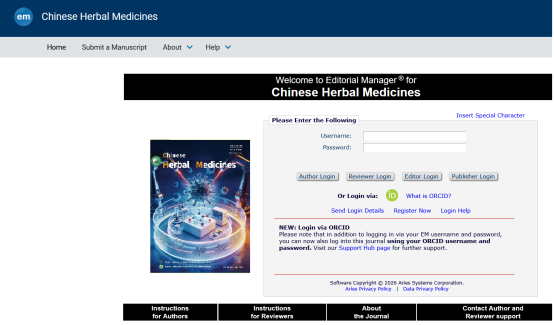 请作者投稿前仔细阅读我刊投稿须知https://www.sciencedirect.com/journal/chinese-herbal-medicines/publish/guide-for-authors,按照规范的格式要求进行投稿。